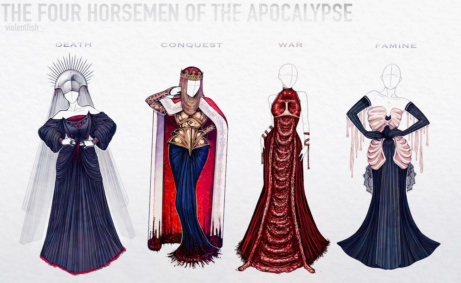 A set of couture meant to express the idea of the Four Horsemen of the Apocalypse:・゚✧:・゚✧